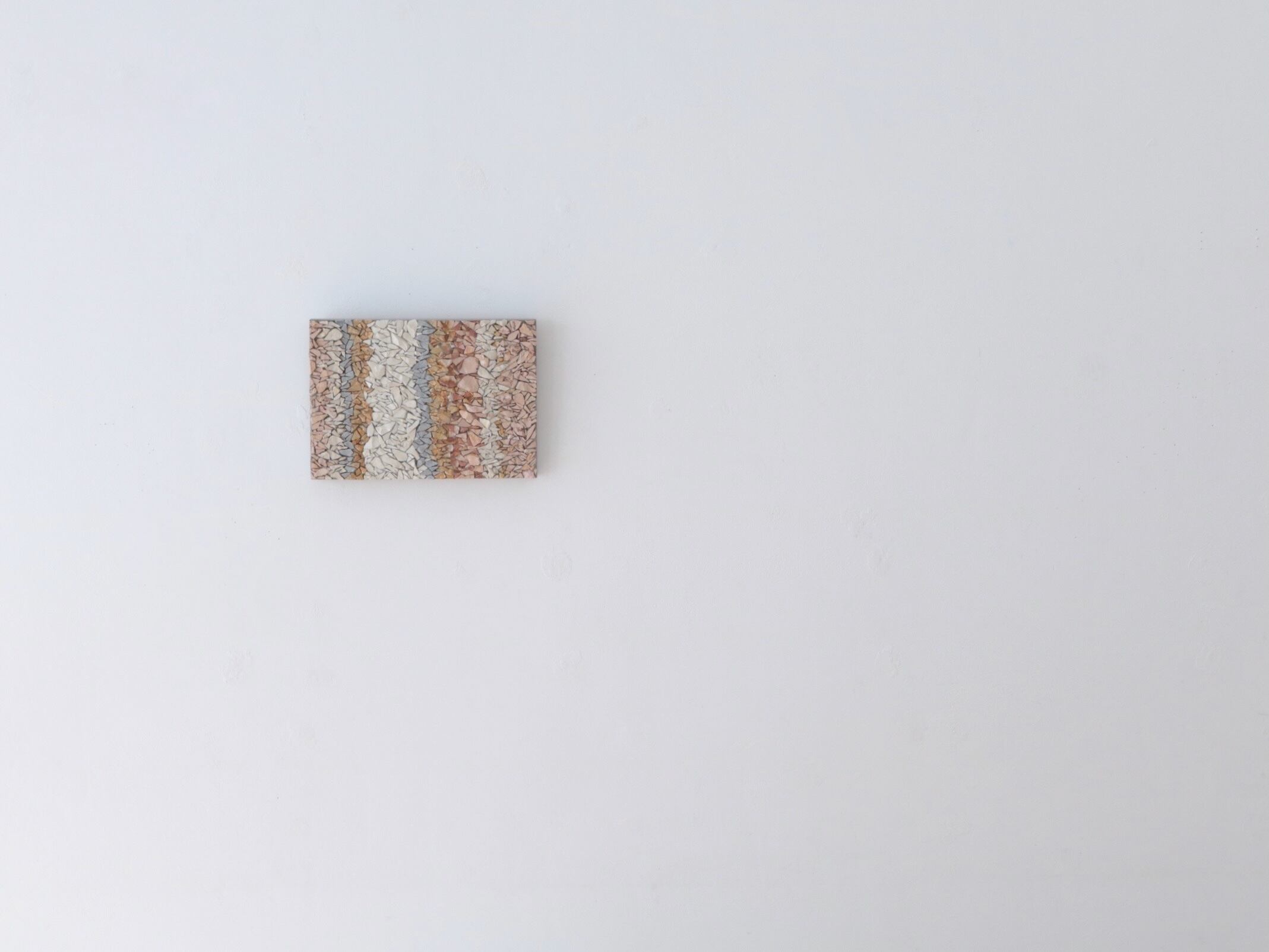 イタリア(ラヴェンナ)のモザイク壁画に魅せられ、現在まで制作活動を続ける。 自然素材の石や、ガラスのエネルギーとモザイクの緻密さから生まれる揺らぐ輝きと流動感を表現しています。