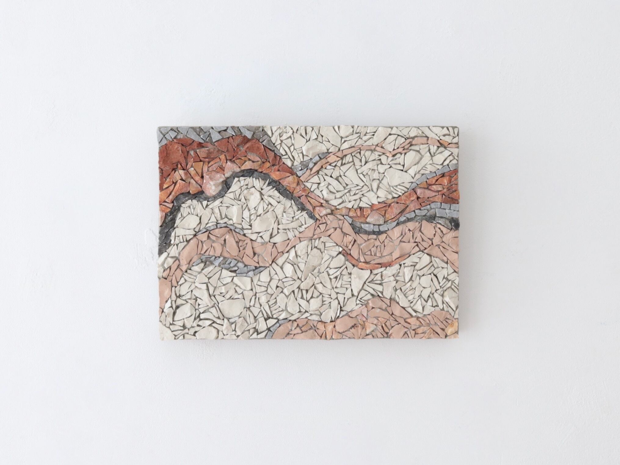 イタリア(ラヴェンナ)のモザイク壁画に魅せられ、現在まで制作活動を続ける。 自然素材の石や、ガラスのエネルギーとモザイクの緻密さから生まれる揺らぐ輝きと流動感を表現しています。